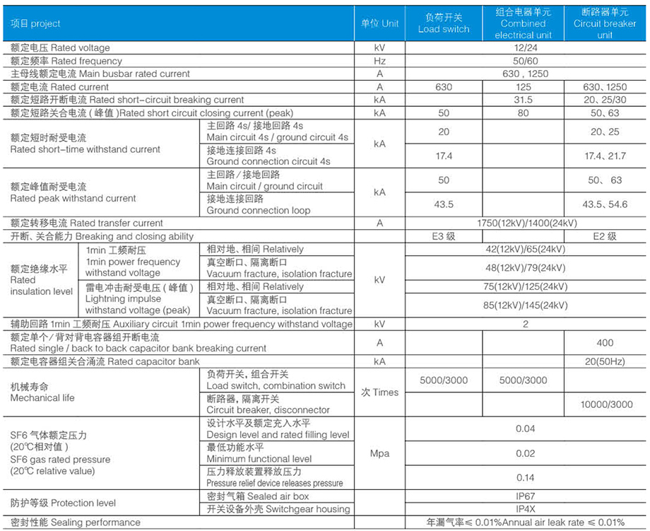 采用模塊化設計,以真空斷路器、負荷開關、負荷開關 - 熔斷器組合電器、隔離開關等主開關作為功能單元,置于密封氣箱內構成各充氣隔室單元,其母線通過母線聯結器可以在左右方向任意擴展,進出線采用插接式電纜。不受環境影響,安全性高,免維護,可靠性強。