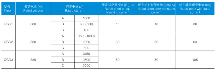 GGD 柜的主電路設計了 129 個方案,共 298 個規格 ( 不包括輔助電路的功能變化及控制電壓的變化而派生的方案和規格 );