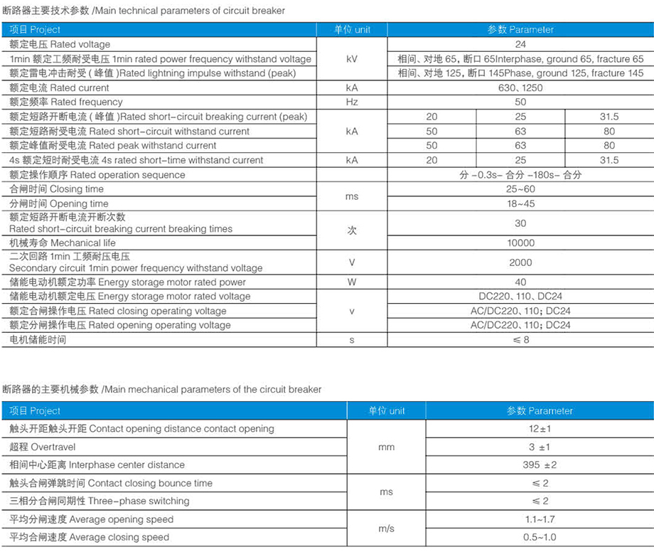 主要技術參數